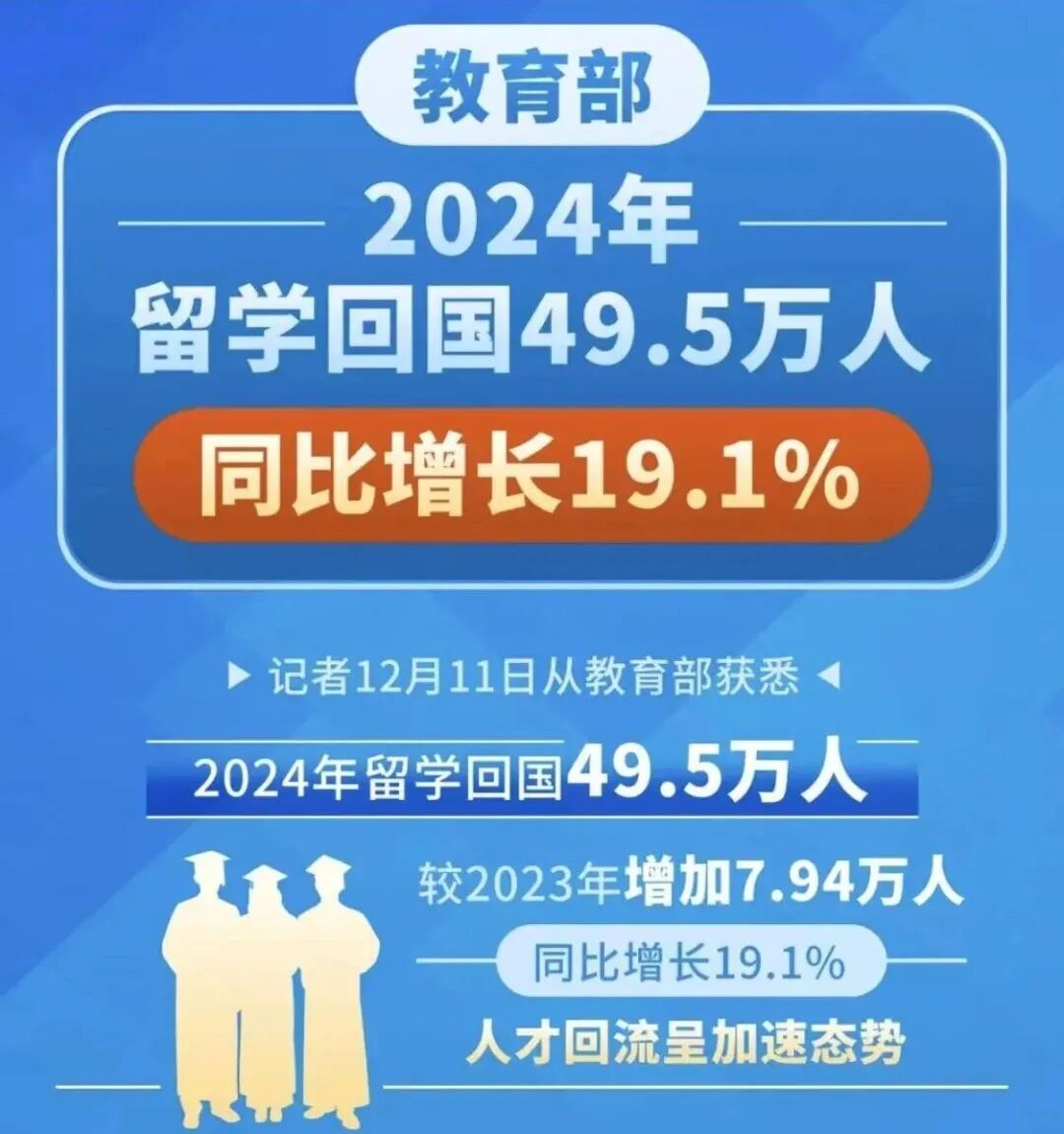 因此,史上最大“留学生归国潮”愈演愈烈。2023年归国的留学生突破30万人,是近十年来的历史新高。