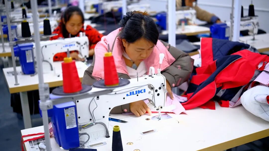 崭新明亮的车间内,“哒哒哒”的缝纫机声此起彼伏,工人们正全神贯注地忙碌着。“我都50多岁了,还能在家门口找到稳定的工作,也不耽误照顾孙子。”排碧村村民石虹艳一边说着话,一边手不停。